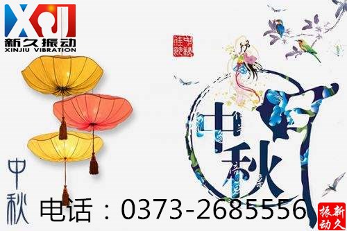 中秋節(jié)即將來臨,新鄉(xiāng)市新久振動(dòng)機(jī)械有限公司全體員工祝您和家人的事業(yè)和生活像那中秋的圓月一樣,亮亮堂堂,圓圓滿滿!福星高照,喜氣長(zhǎng)留!祥云浮紫閣,喜氣溢朱門!簾短能留月,樓高不礙云!蘭經(jīng)香風(fēng)滿,松窗夜月圓!