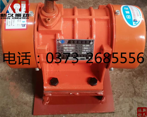 備注:ZFB-5型系ZFB系列倉壁振動器,激振力:0-3kN,轉(zhuǎn)速:3000r/min,功率:0.25kW,電壓:380v,電流:0.6A,是料倉、料罐、料斗、溜槽及輸送管道等設(shè)備的理想防閉塞裝置。
